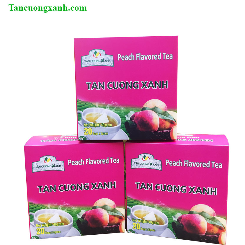 - Trà Đào Túi Lọc – Tân Cương Xanh được làm nguyên liệu là Hồng Trà và Hương Đào Tự Nhiên